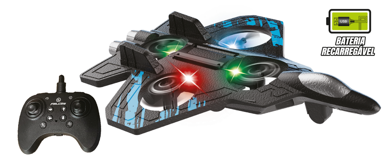 Voos incríveis e muita diversão com controle fácil e cheio de aventura! Controle remoto intuitivo, manobras precisas (+16 comandos), estrutura resistente e durável, estabilidade e velocidade. Com bateria recarregável.