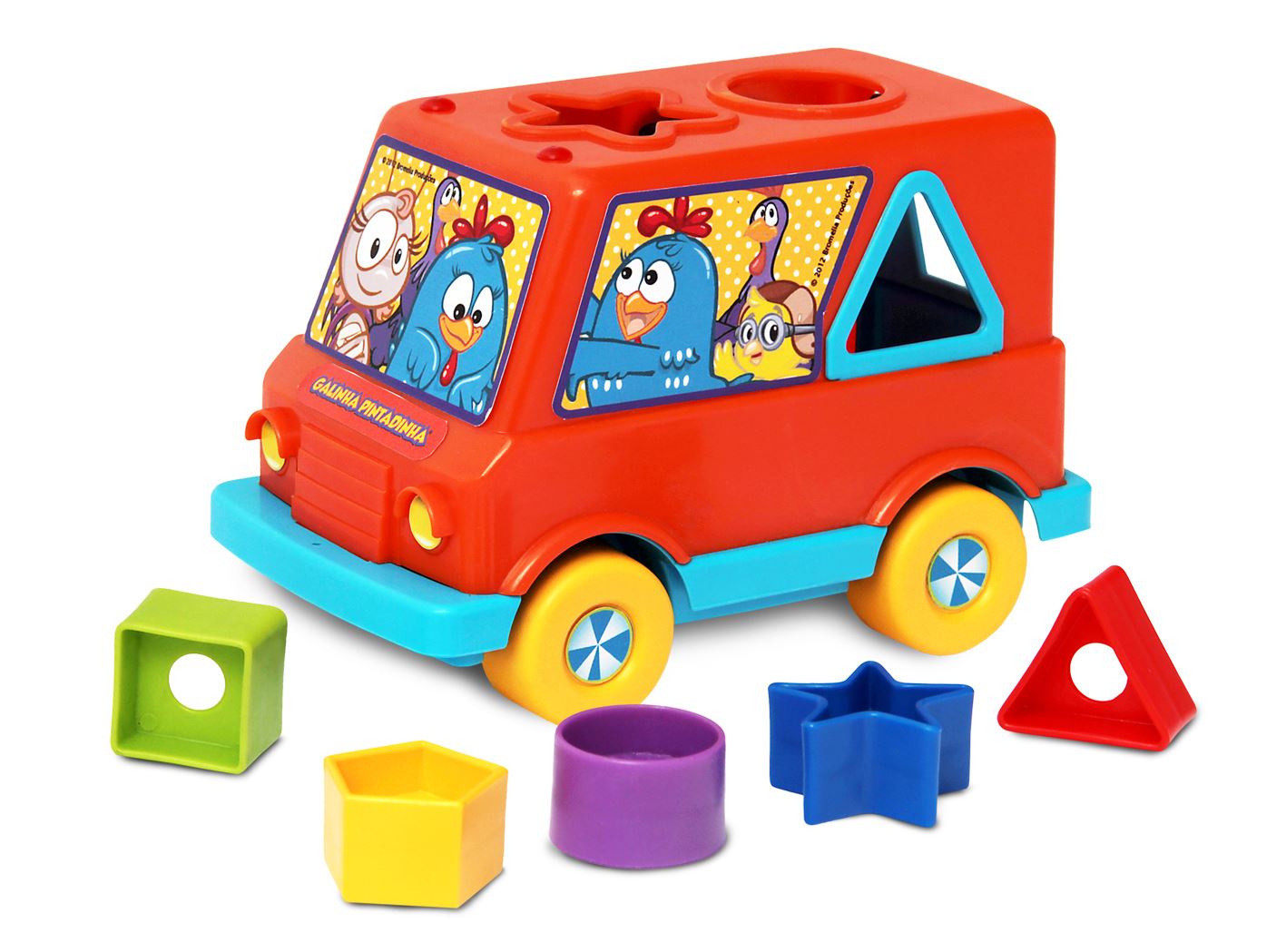 Pó, Pó, Pó! A Van da Galinha Pintadinha vai sair da garagem. Todos a bordo para uma grande aventura. A Baby Van da Galinha Pintadinha é toda colorida. Suas cores chamam a atenção dos bebês. O desenho dos personagens decorados na peça da janela ajuda a desenvolver a imaginação para contar histórias.