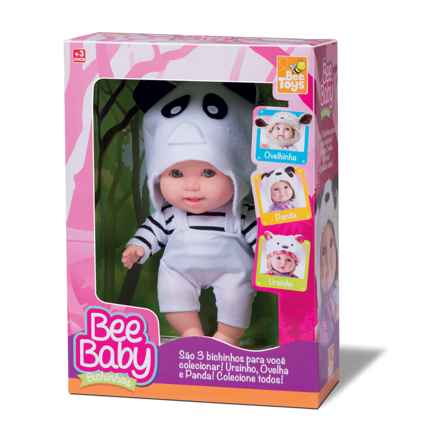 A Boneca Bee Baby Bichinhos é linda, uma fofura e as meninas adoram muito! Uma bonequinha muito encantadora, vestida de panda! A boneca tem aproximadamente 22 cm de altura.