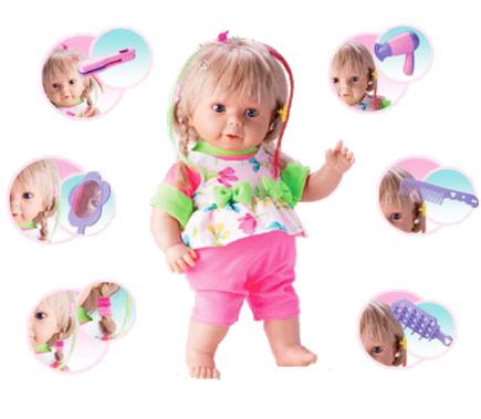 As meninas vão se divertir e se tornar uma verdadeira artista com a Bee Baby! Da para fazer lindos penteados coloridos com seus acessórios! Contém diversos acessórios para se divertir muito. O it é composto por, escova, pente, espelho, secador, chapinha e lindas xuquinhas!