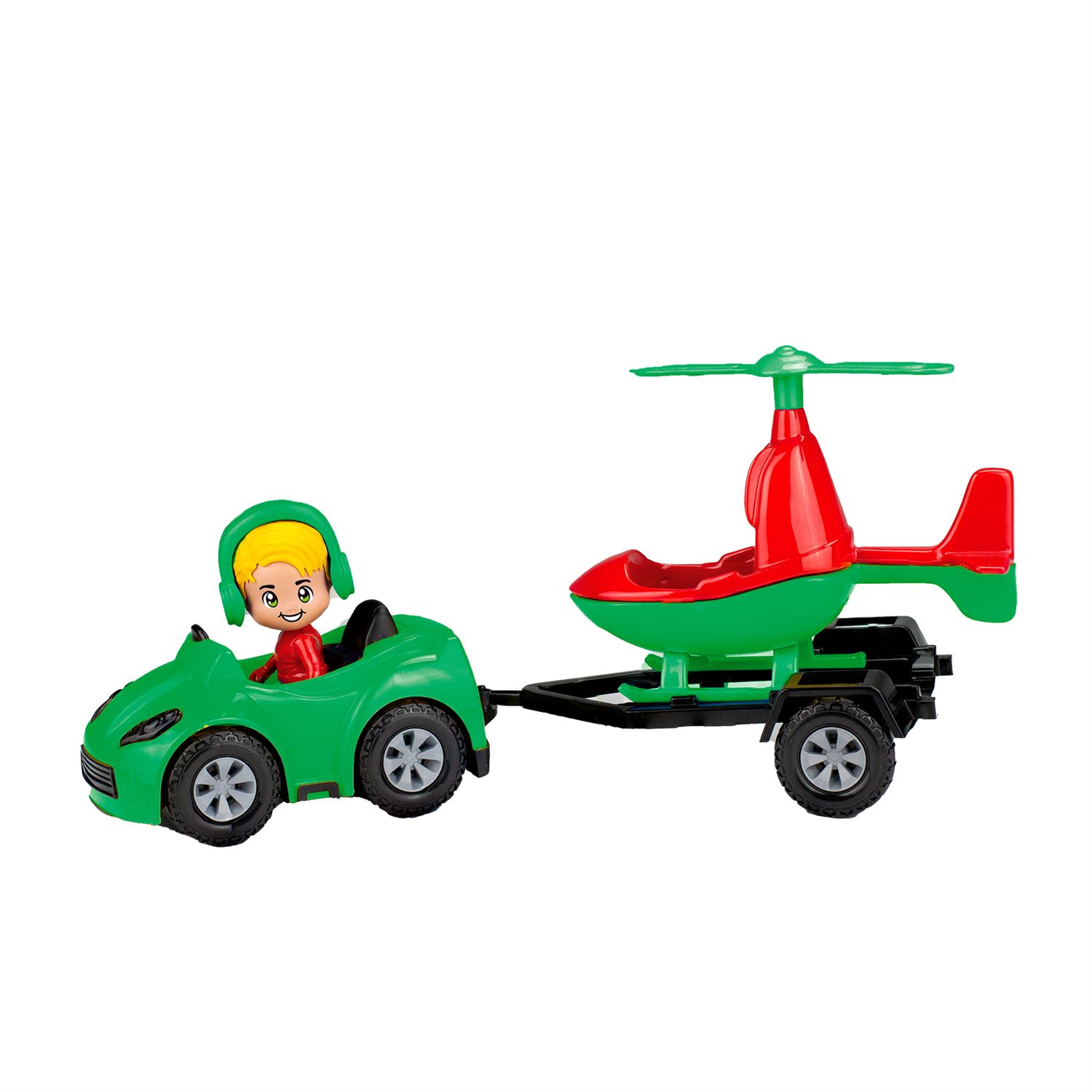Este conjunto encantador traz um carrinho colorido com motorista e um reboque com helicóptero, perfeito para estimular a imaginação em aventuras cheias de movimento. Cores sortidas.
