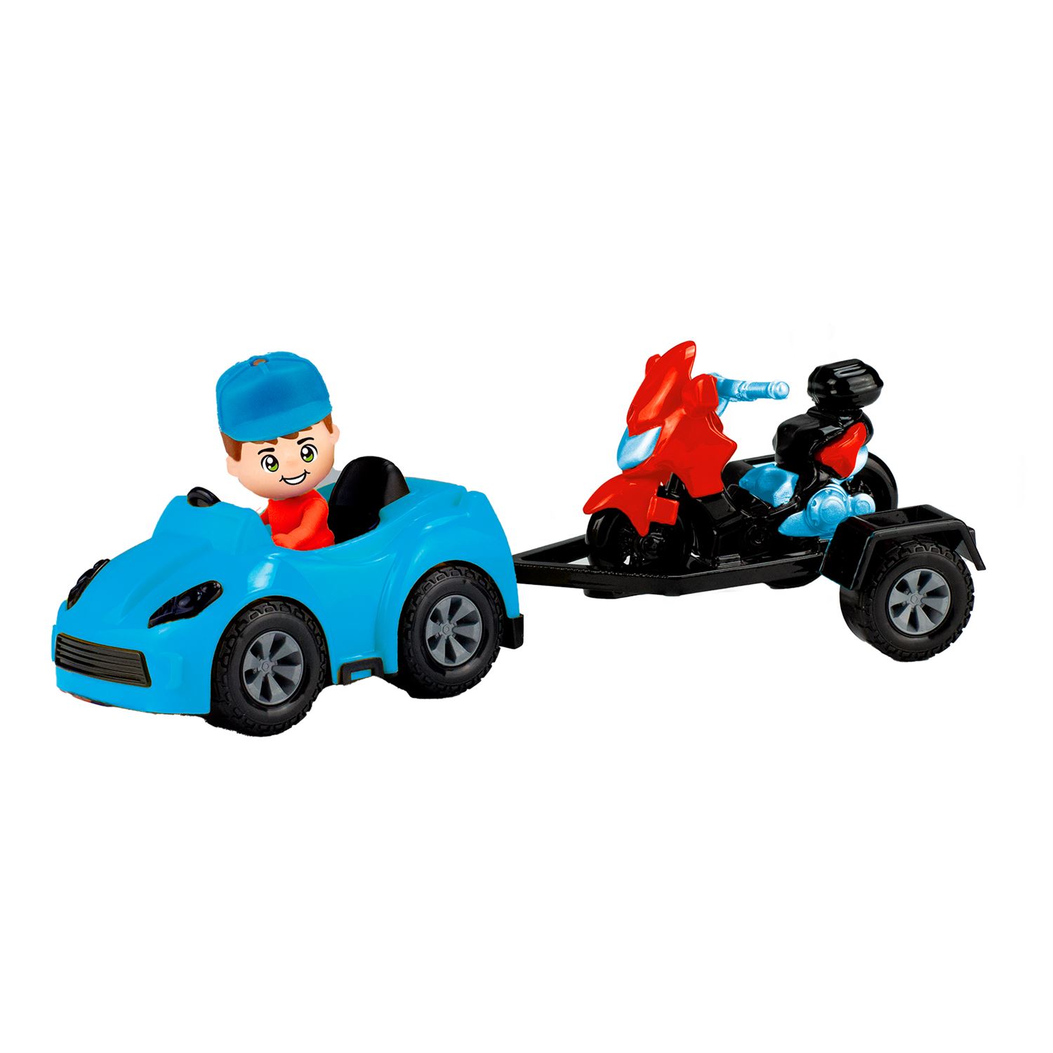 Este conjunto encantador traz um carrinho colorido com motorista e um reboque com moto, perfeito para estimular a imaginação em aventuras cheias de movimento. Cores sortidas.