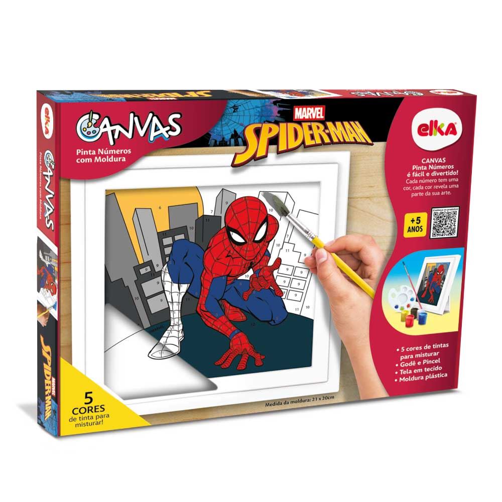 Canvas Pinta Números estimula a criatividade da criançada. Tela em tecido, tipo canvas, com imagem do seu personagem favorito, onde cada número tem uma cor e cada cor pintada revela uma parte da sua arte. A moldura plástica serve como suporte para pintar e depois transforma a tela em um quadrinho para decorar como quiser. Vem com 5 cores de tintas e pincel.