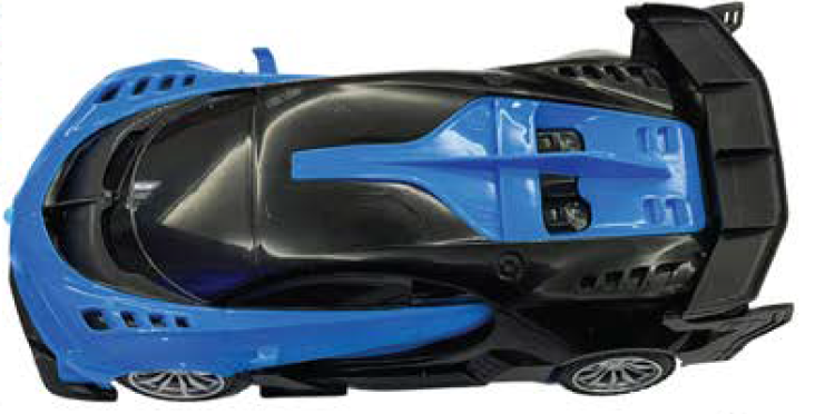 Carro de controle remoto estilo super carro, com cores vibrantes, pneus em borracha, 6 comandos, luzes e bateria recarregável. Escala 1:20 (20 cm de comprimento). Cores sortidas.