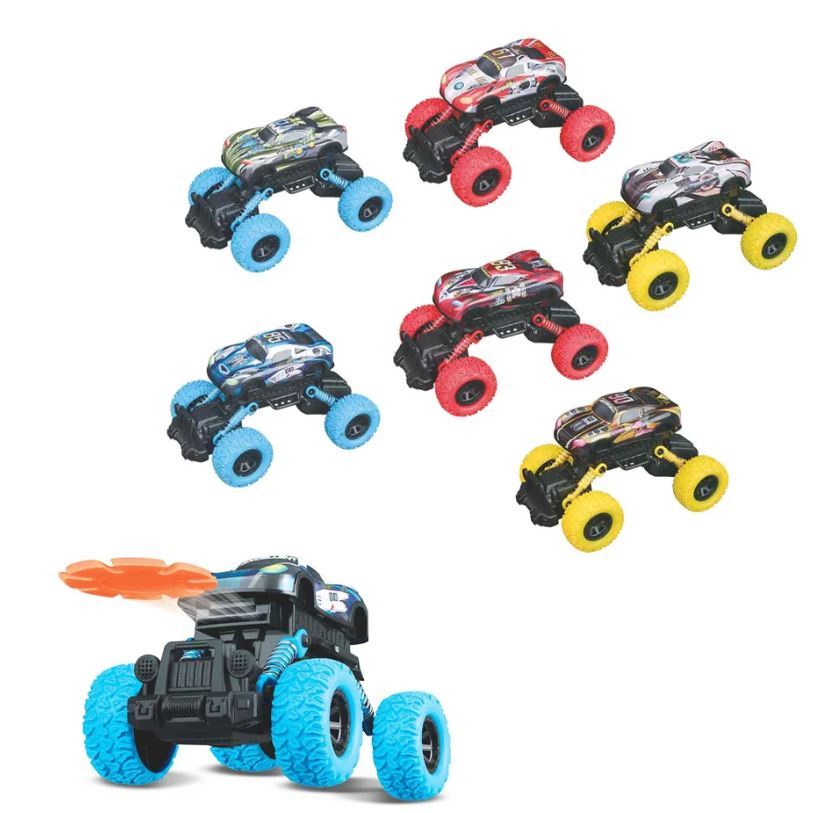 Carrinho off-road movido a fricção que dispara discos. Acompanha 9 discos. Cores sortidas.