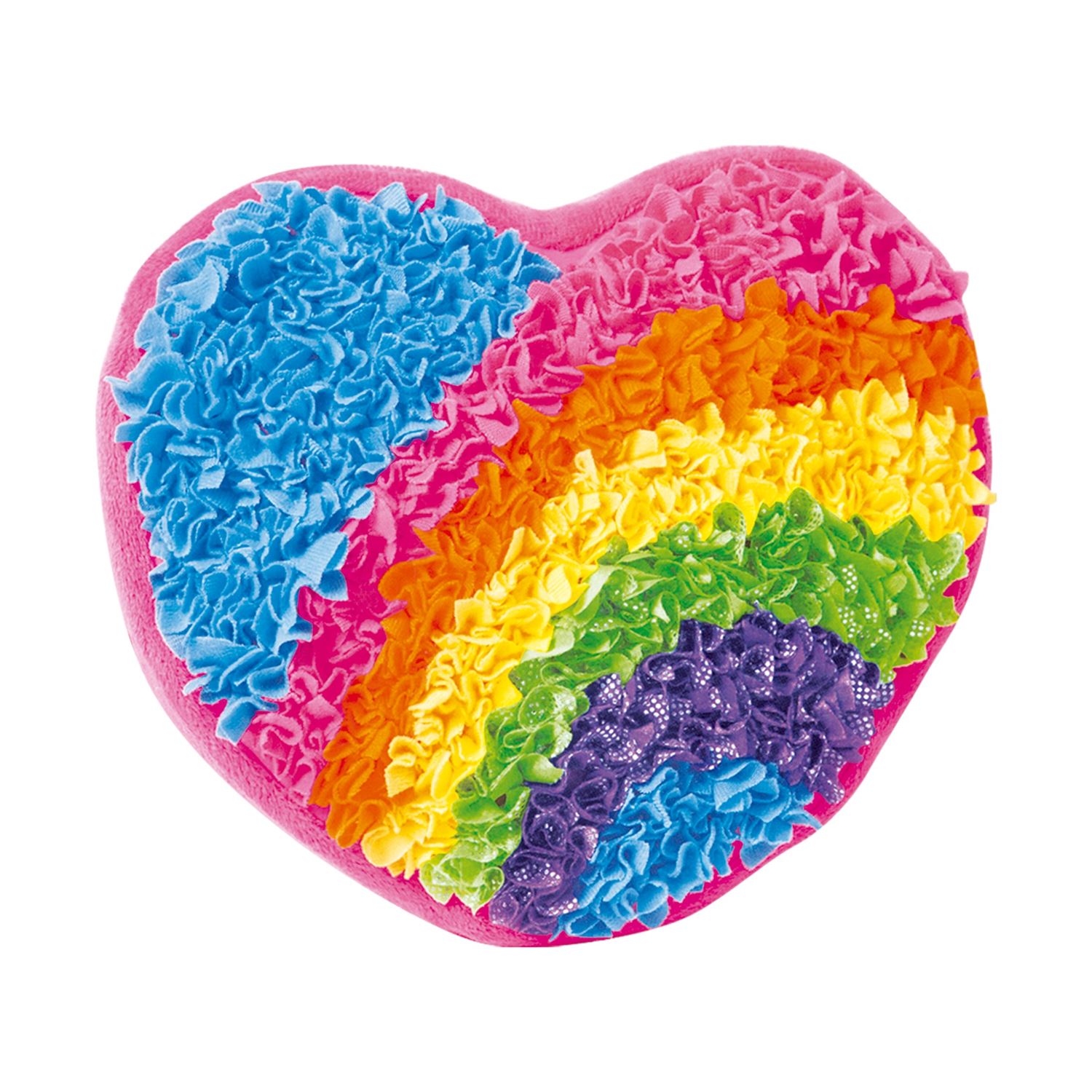 Almofada decorativa em formato de coração, com acessórios para personalização. Ideal para atividades criativas e decorativas.