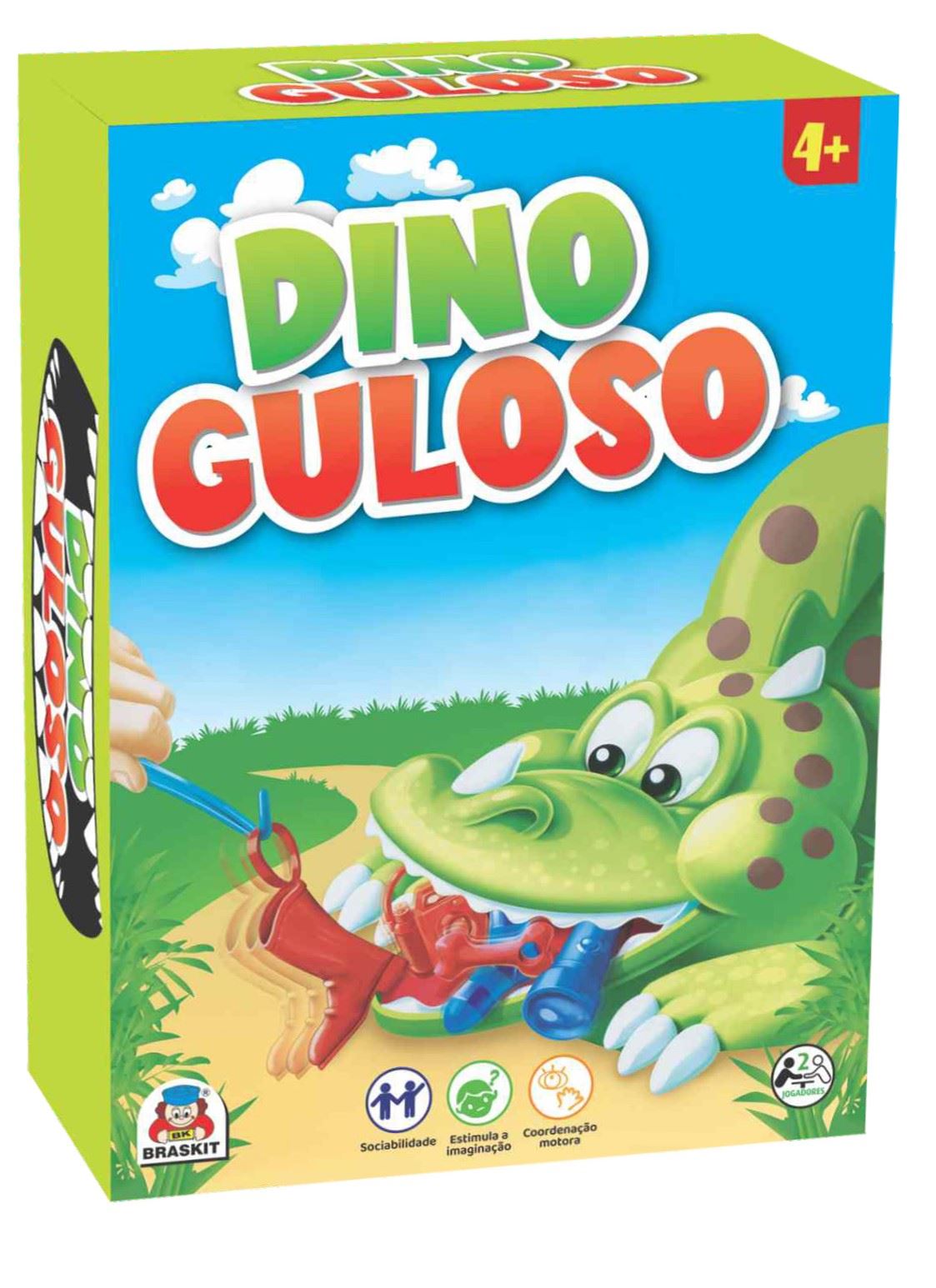 Jogo com objetivo de retirar as peças da boca do dinossauro com o auxílio de um gancho, tome cuidado para ele não fechar a boca.