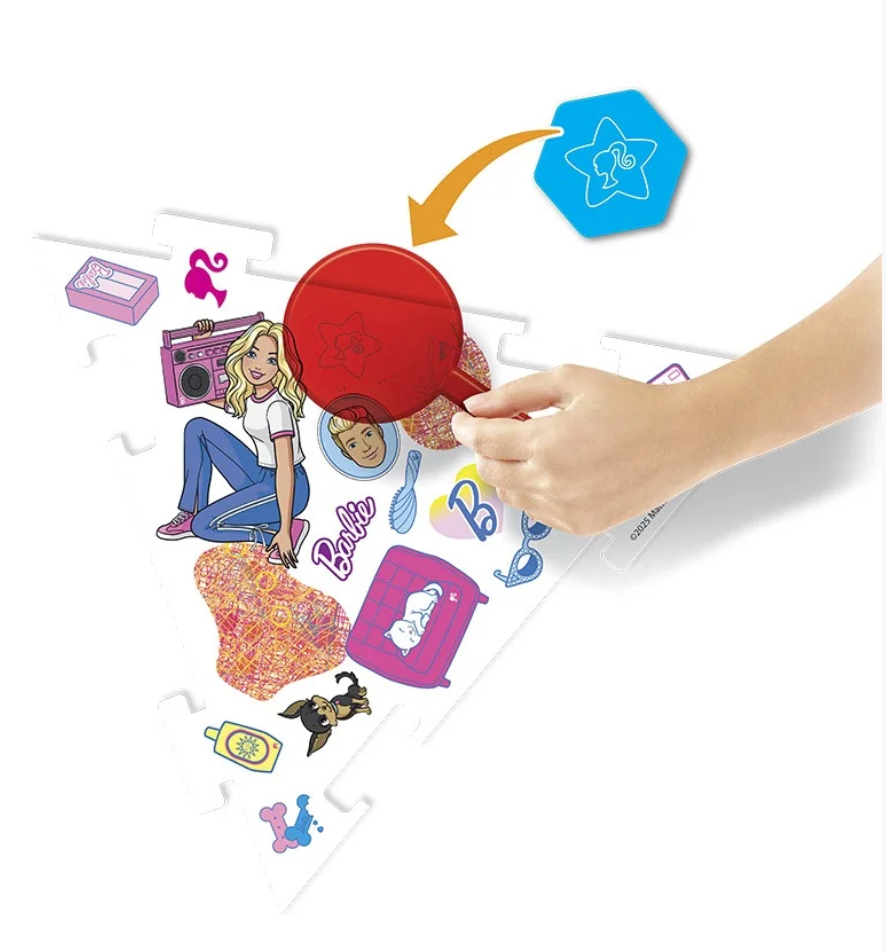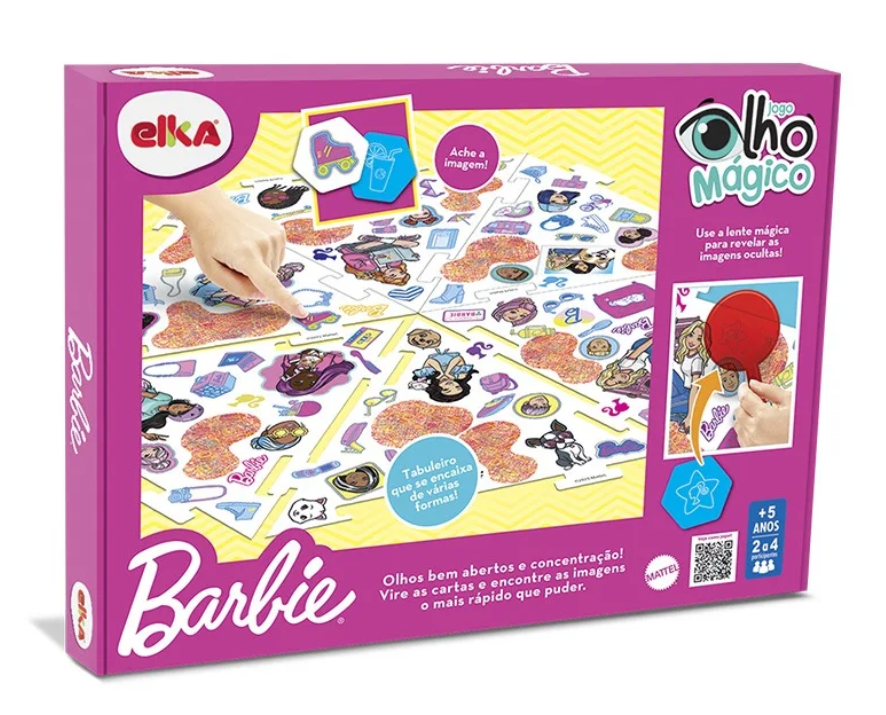 Olho Mágico da Barbie – O Jogo! Com cartas ilustradas e um tabuleiro modular, este jogo vai desafiar sua percepção! Mantenha os olhos bem abertos para encontrar as imagens no tabuleiro! E use a Lente Mágica para revelar imagens escondidas e descobrir o que está além do que se vê! É possível jogar até 4 pessoas e de 3 formas, individual, cooperativa ou em duplas! É pura diversão.