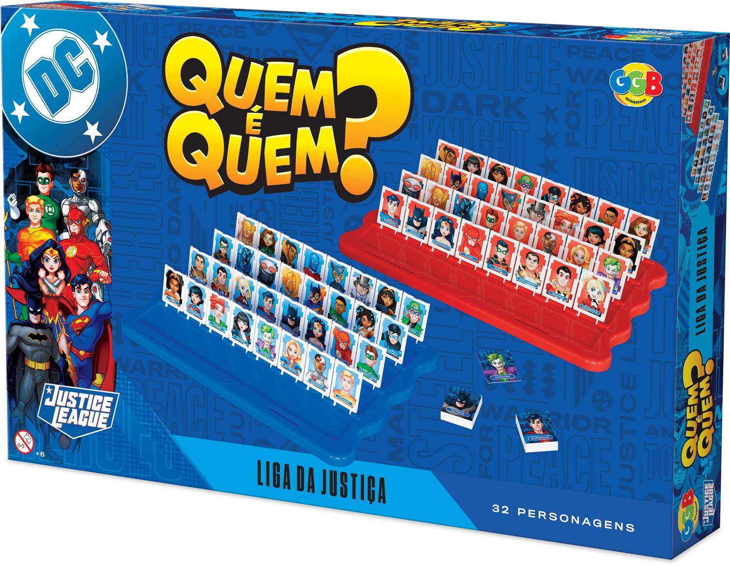 Jogo interativo inspirado na Liga da Justiça que estimula o raciocínio lógico, a observação e a dedução. Ideal para brincar em família e se divertir descobrindo os personagens!