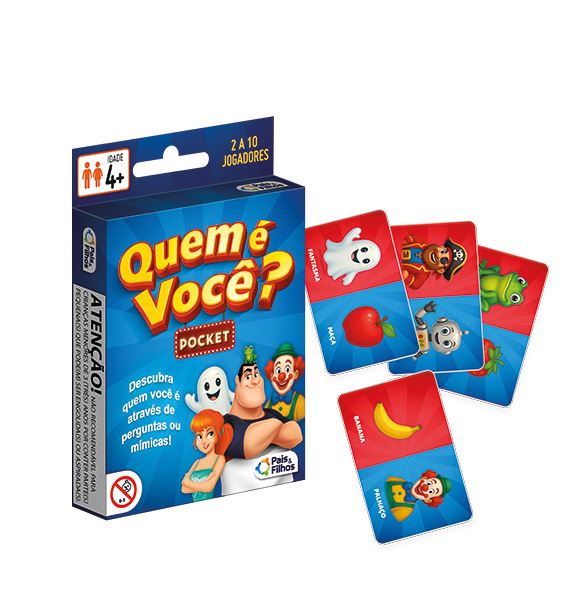 A clássica adivinhação de personagens agora em versão de cartas! Para 2 ou mais jogadores, cada um tenta descobrir quem ou o que é o personagem secreto do oponente usando perguntas de sim ou não ou através de mímicas.