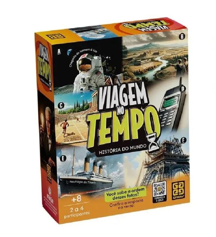Embarque em uma incrível jornada pela linha do tempo da humanidade!No jogo Viagem no Tempo, cada carta traz seis eventos históricos ¿ e seu desafio é colocá-los na ordem cronológica correta, do mais antigo ao mais recente.