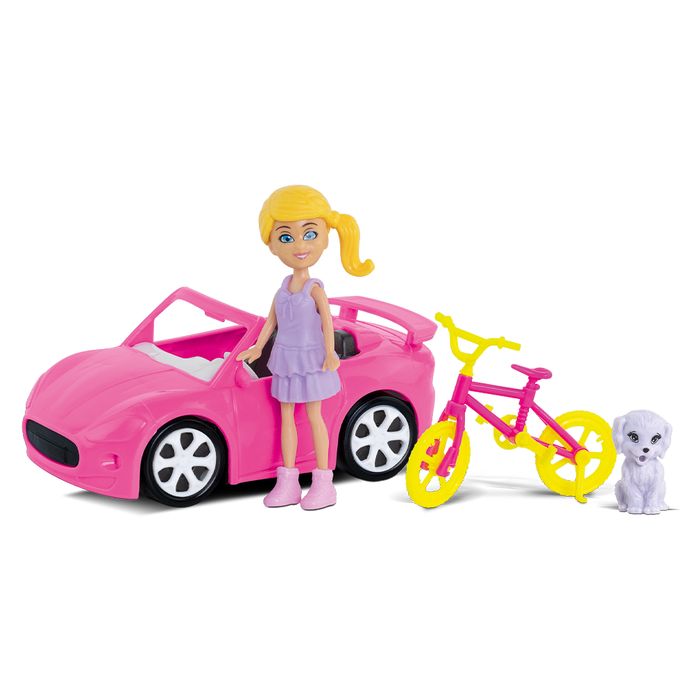 Que tal levar a Judy para um passeio de férias? Com seu carro esportivo vocês viverão grandes aventuras. Acompanha uma bike e um pet sortido.