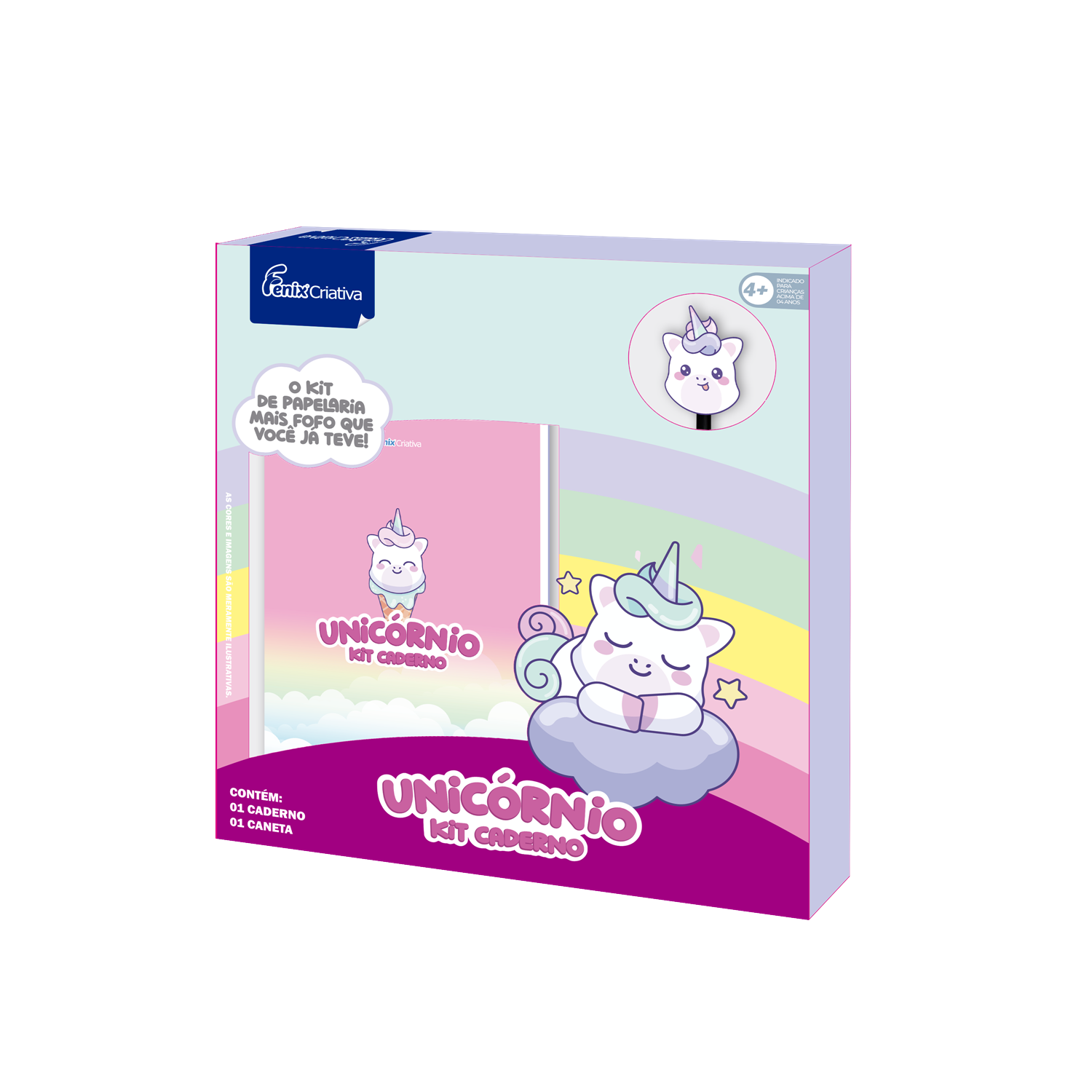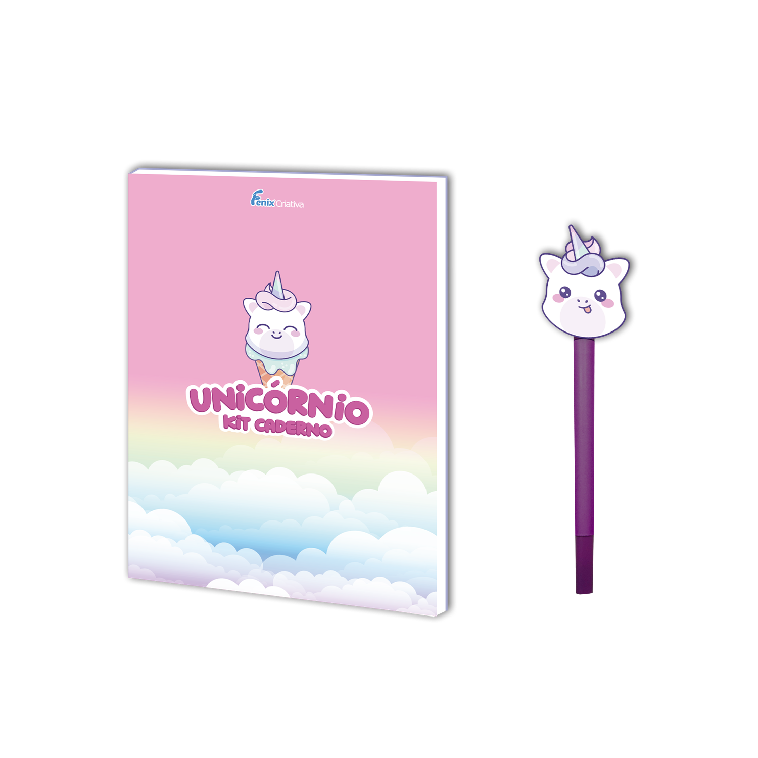 Um lindo kit de caderno do Unicórnio que acompanha uma caneta para as crianças usarem como quiserem, não só oferecendo praticidade, mas também adicionando uma dose extra de fofura.