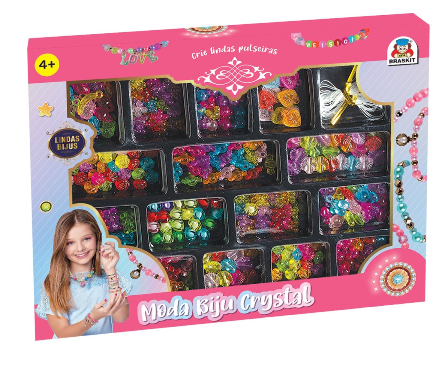 Kit de miçangas com várias cores e formatos para criar lindas pulseiras.