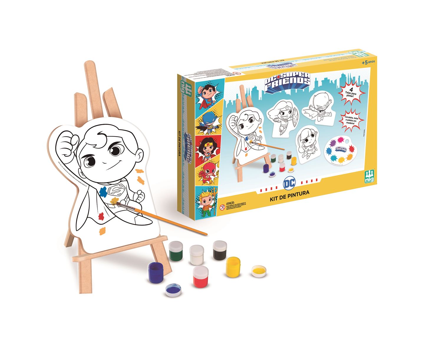 Contém 04 telas, 01 cavalete e 01 paleta em madeira + 06 guaches e um 01 pincel.