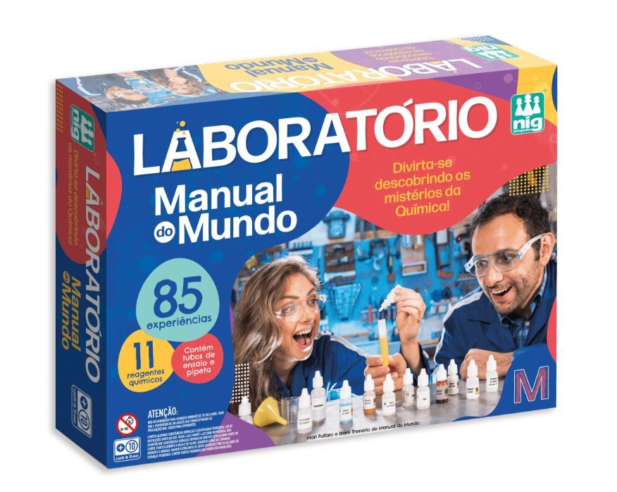 Em parceria com o canal do Youtube Manual do Mundo, o Laboratório Manual do Mundo vai movimentar o mercado de kits de Química para jovens cientistas. A Manual do Mundo é hoje uma das maiores produtoras de entretenimento educativo do país, com 16 títulos publicados e mais de 18 milhões de seguidores. São 85 experiências, cada uma com um cartão, onde você vê os materiais necessários, os procedimentos e a explicação de como fazer. Um quarto dessas experiências eles já fizeram no Youtube, então nas fichas a criança vai encontrar um QR Code para acessar o vídeo do experimento.