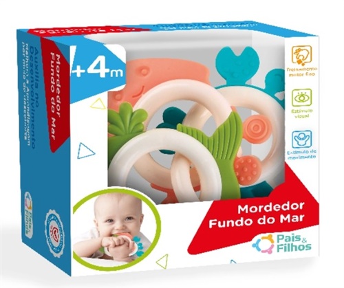 O Mordedor de Silicone Fundo do Mar da Pais&Filhos, é ideal para aliviar o desconforto causado pelo nascimento dos primeiros dentinhos. Formato anatômico e leve, é perfeito para o bebê segurar. Através do chocalho, cores, formas e texturas, estimula todos os sentidos, contribuindo para o crescimento saúdavel da criança
