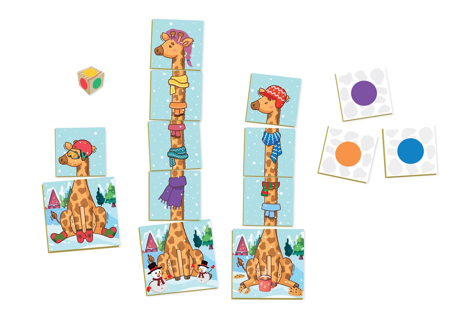 Quem vai formar a maior girafa? Jogue o dado, vire a peca com a cor sorteada e construa sua girafa, a peça da cabeça vai trancar seu jogo. Trabalha o reconhecimento das cores e o desenvolvimento cognitivo.Indicado para crianças com TEA e TDAH.