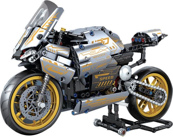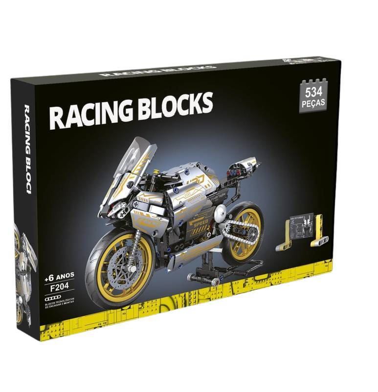 Escala 1:10 com design esportivo, 534 peças para montagem completa, blocos tecnológicos de alta precisão, guidão funcional que se movimenta. Estimula criatividade, paciência e raciocínio.