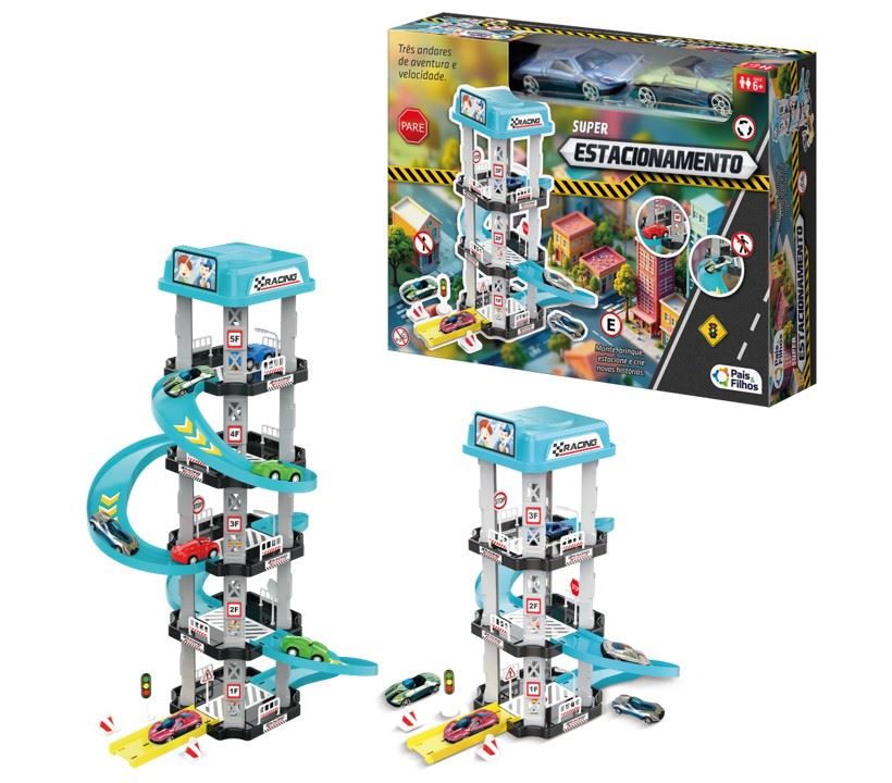São 3 andares de aventuras e velocidade! Monte, brinque, estacione e crie muitas histórias. Acompanha 2 carrinhos.