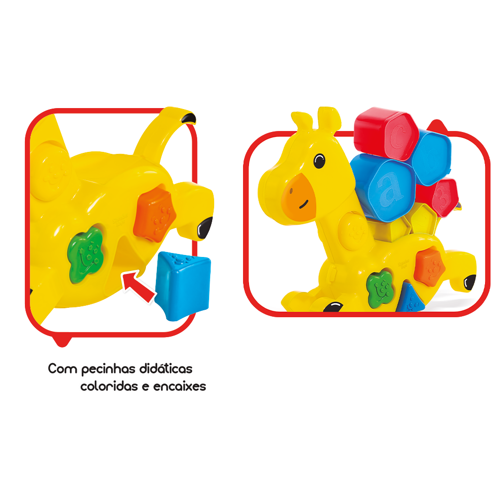 Com pecinhas didáticas coloridas para encaixe, estimula o reconhecimento de formas e cores, além de trabalhar a coordenação motora e o raciocínio lógico.