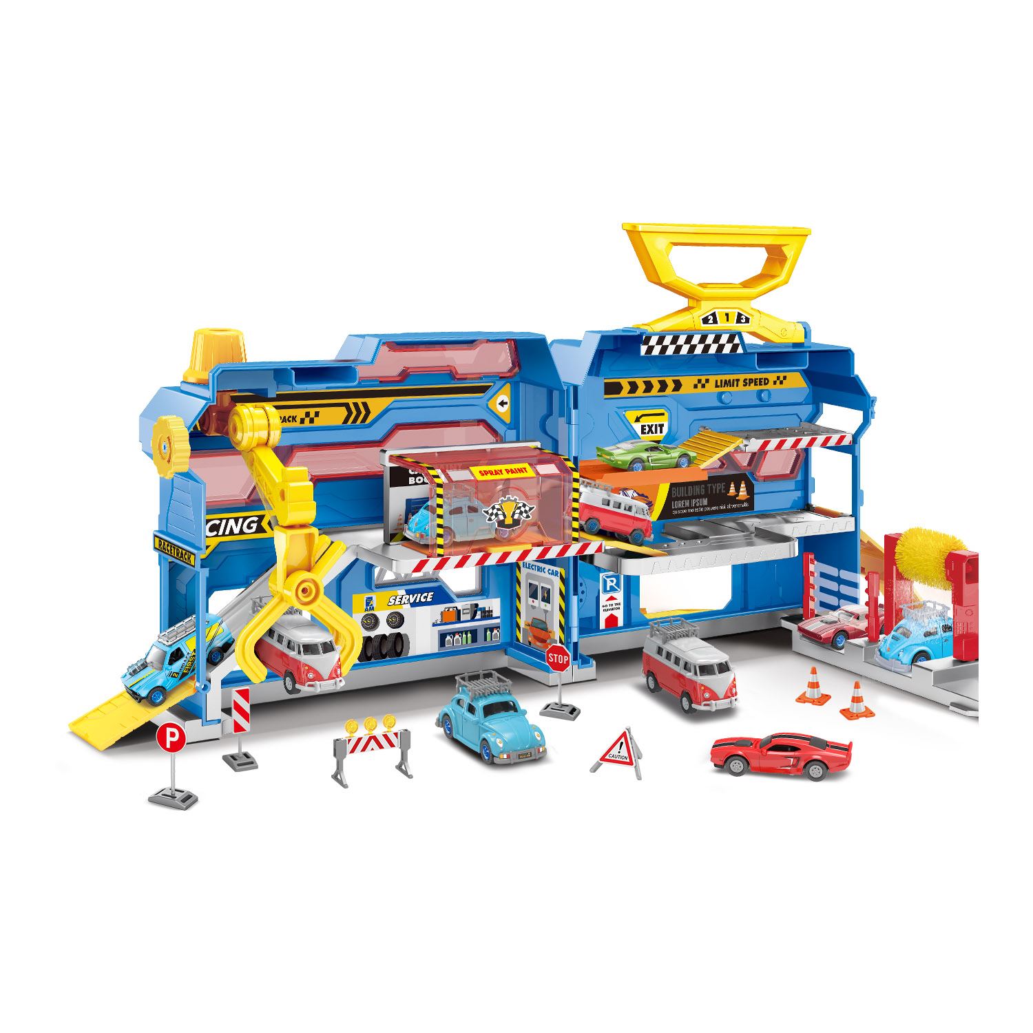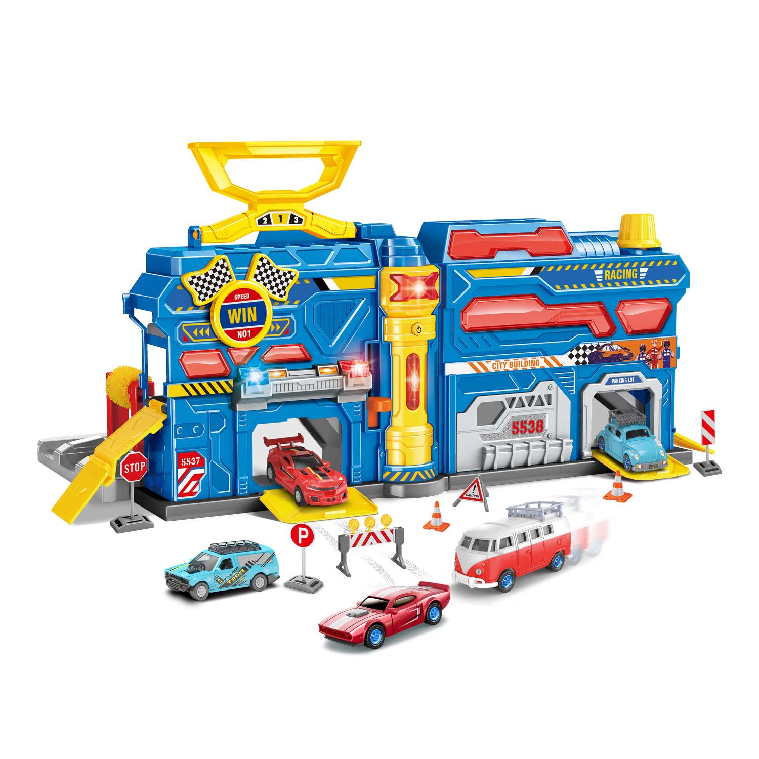 Diversão completa de montar, brincar e imaginar, com estrutura interativa, luzes e sons, a diversão parece uma verdadeira oficina de verdade. Acompanha 4 carrinhos.