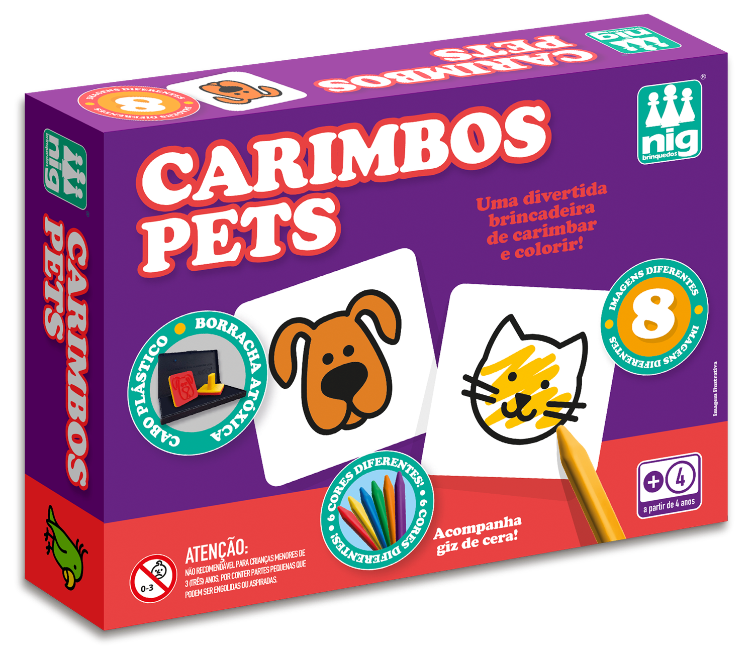 Uma divertida brincadeira de carimbar e colorir! São 8 imagens diferentes nos carimbos e ainda acompanha giz de cera. Estimula a interação entre pais e filhos, coordenação manual, a criatividade e imaginação da criança.