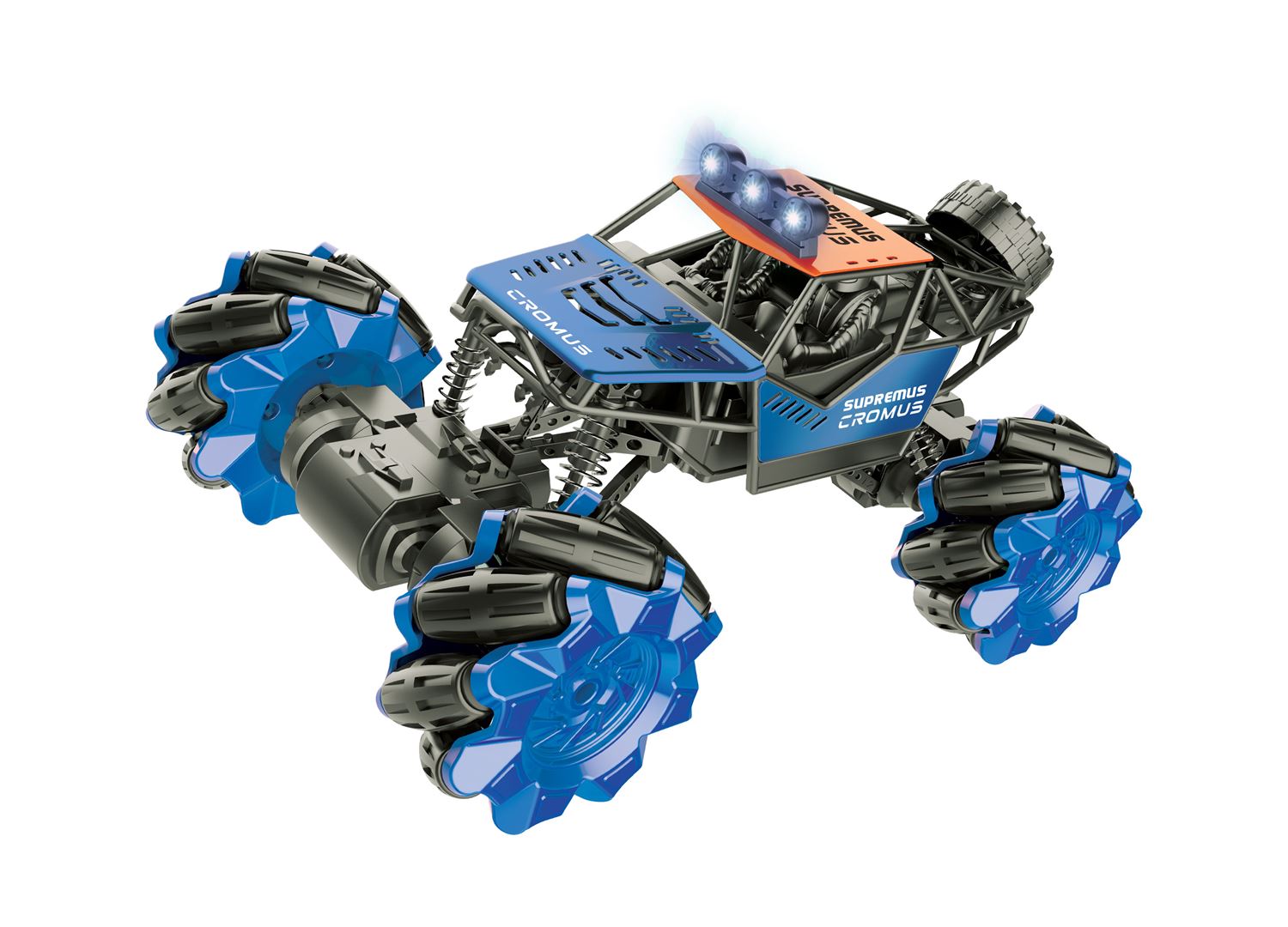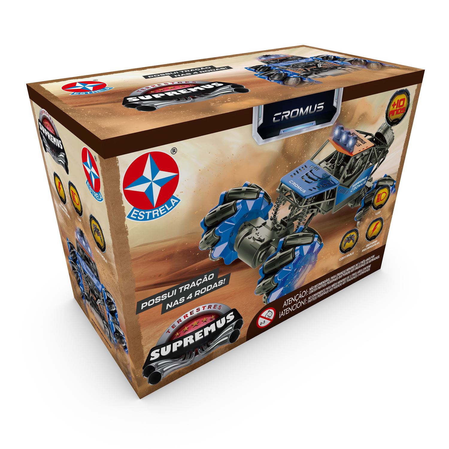 O Supremus Cromus é um carro de controle remoto movido a bateria recarregável de lítio (inclusa). Ele possui uma carroceria robusta de metal e luzes no farol frontal. E, além disso, oferece 10 funções e tração nas 4 rodas, permitindo que o veículo se desloque para os lados e realize manobras 360 graus.