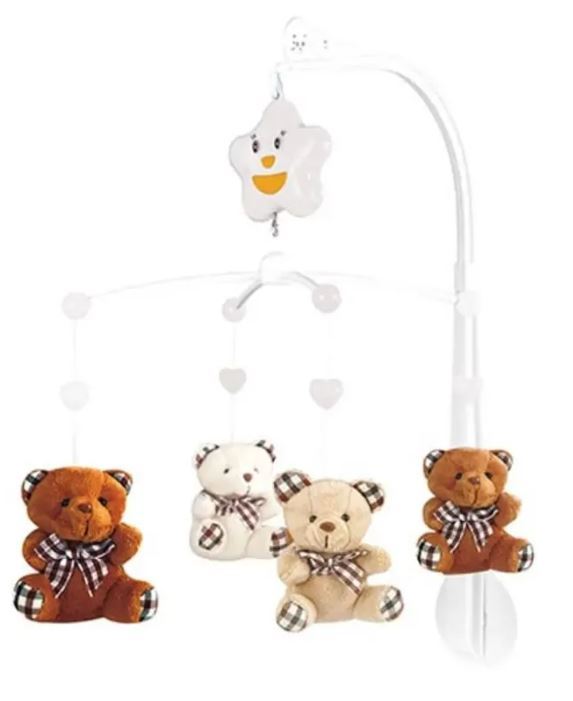 O Móbile Musical - Pais e Filhos com ursinhos de pelúcia é incrivelmente fofo e divertido. Perfeito para ser o primeiro brinquedo do seu bebê e apresentá-lo ao mundo. Ele vai ajudar o bebê a exercitar os olhos, a cabeça e o pescoço, além de estimular os bebês com o movimento, cores, formas e música. A decoração do quarto do bebê fica muito mais fofa.